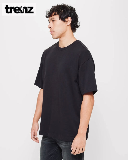 Premium Quality Black Drop Shoulder Tee – Oversized Fit | Trenz