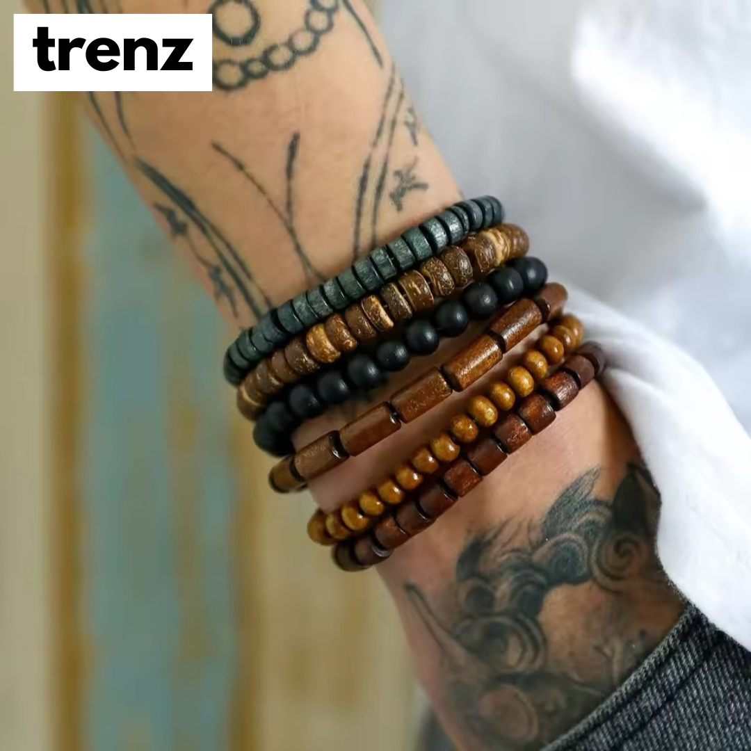 Elevate your style with our unique 6Pcs Retro Wooden Men's Handmade Beaded Bracelet Set! Each bracelet is carefully handmade with high-quality wooden beads and features a multi-color elastic line for a comfortable fit. Perfect for men who love a laid-back, retro vibe.